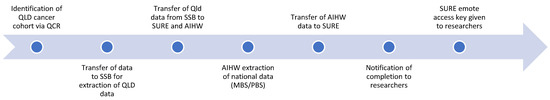 The AIHW has authority to extract and link Commonwealth data and to perform linkage of state and national data. The AIHW will receive Queensland data and link this to appropriate MBS and PBS records. The final dataset will be transferred from AIHW and SSB linkage units to SURE. The research team will be notified and will receive a key for remote data access.