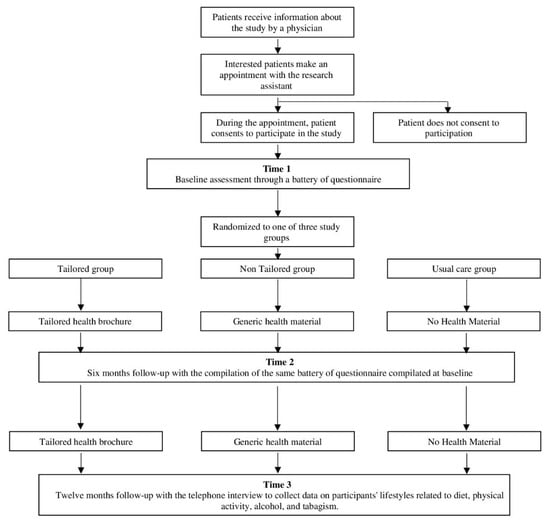 At baseline and the six-month follow-up, patients will complete a series of self-report questionnaires evaluating lifestyle behavior, socio-demographic, and psychological characteristics. At the 12-month follow-up, patients will have a telephone interview that will assess lifestyle habits. After the baseline measurement, patients will be randomized into one of three groups: (1) the tailored group, which will receive tailored health brochures; (2) the “non-tailored” group, which will receive non-tailored health brochures; and (3) the usual care group, which will receive no print information materials. Participants will be assigned to one of the three study groups using a stratified randomization process characterized by the unpredictability of assignments. Patients in the tailored and non-tailored group will be mailed a health brochure after a baseline and a six-month evaluation. Within ten working days of completing the questionnaire, both at baseline and the six-month follow-up, the tailored (T) and non-tailored (NT) group will be mailed printed health materials while patients in the usual care (UC) group will receive no materials. Following the delivery of the materials, patients in the T and NT group will be contacted by phone for an interview to measure their judgment of the material. At the 12-month follow-up, all patients will have a telephone interview that will assess their lifestyle in terms of dietary behavior, physical activity, alcohol intake, and smoking behavior.