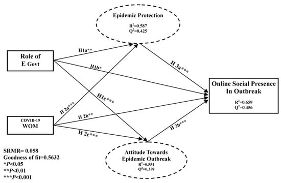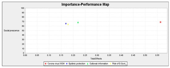 The literature shows that the role of government, especially governmental strategies and alertness messages, in any outbreak is progressively enhanced []. Communication and interaction with the government has increased in last few years, as the government is interested in engaging its people through social media []. The abovementioned literature justifies that the government understands people’s perceptions about the role of E-Govt.