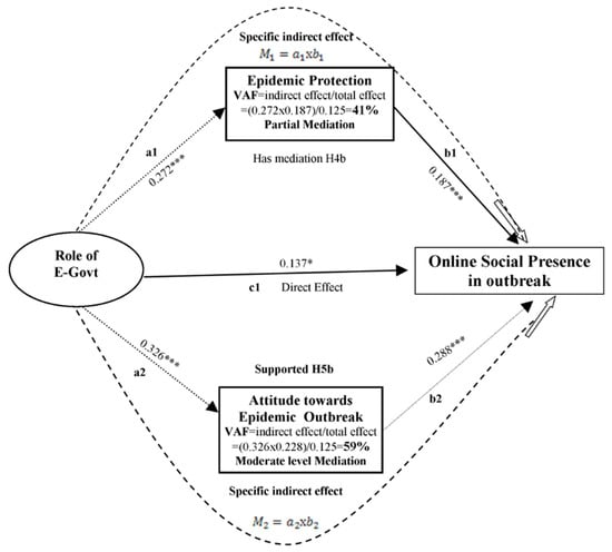 Epidemic protection mediates the association between role of E-government and online social presence.