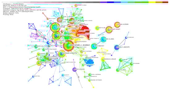 The scientific research cooperation group centered on the authors of MURRAY C J L, ATUN R, MCKEE M, BHUTTA ZA, and MEARA JG has the closest communication. The details of the top 20 authors published papers are shown in Table 2.