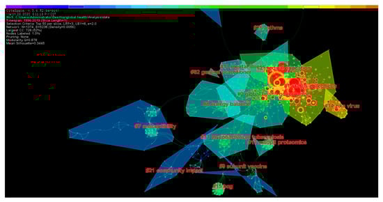 It can be seen from Table 7 that the silhouette values of all clustering results are greater than 0.7, indicating that there is no problem with clustering. According to Figure 8 and Table 6, currently, “global health governance”, “global health diplomacy”, “medical education”, “global health education”, “antimicrobial resistance” and “Zika Virus” are the research frontiers and hot spots in the global health field. In addition, “quality of life”, “energy balance; adipose tissue; appetite”, “subunit vaccine”, “mental illness”, “mental health”, “community impact”, “health services” and “interaction strategies” are important research topics and directions of global health.