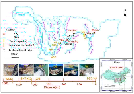 | Dam | Acronym | Completion Time | Storage Capacity (108 m3) | Distance from Gezhouba (km) |
