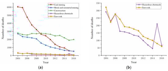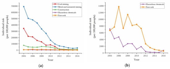 Zhang, L.; Luo, Y.; Xu, M.; Wang, G.; Liang, W.; Xiang, Y. Relative Risk of High-Danger Industries in China from 2004 to 2016. Int. J. Environ. Res. Public Health 2020, 17, 3017. https://doi.org/10.3390/ijerph17093017