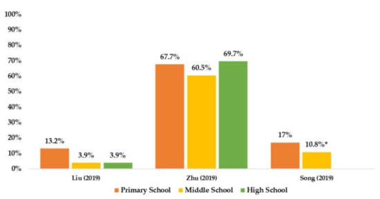 Accurately capturing the prevalence of PA and SB is imperative and a prerequisite for future public-health actions and strategies. At present, the global prevalence of PA and SB in children and youth is at a concerning level. For example, the 2012 Lancet Physical Activity Series reported that nearly 80% of adolescents (13–15 years old) failed to meet PA guidelines, and over 60% of children had more than 2 h of daily SB []. As a global monitoring and surveillance tool with widespread impact, the Active Healthy Kids Report Cards in 2016 and 2018 informed that children and youth exhibited a lower level of PA and a higher level of SB [,]. Recently, Guthold and colleagues [] found that 81% of 11–17-year-old students globally did not accrue sufficient PA. Insufficient PA and excessive SB are prevalent among Chinese children and adolescents. For example, two national surveys estimated that the prevalence of having at least 60 min of MVPA ranged from 29.9% to 34.1% [,], while the proportion of Chinese children and adolescents reporting no more than 2 h of SB was 65.4% []. However, inconsistency in reporting the prevalence of PA and SB among young people was observed []. For example, Pedisic et al. [] indicated a large variation in the estimated prevalence of PA in Australian children and youth across different national surveillance programs. This inconsistency was largely attributed to measurement differences that, in turn, contribute to unreliable public-health insights.