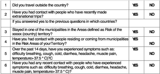 - In the patient’s medical history, record the results of the telephone triage regarding the presence of suspicious and actual symptoms, potential contact with people who have been to risk areas, and the patient’s own transit/permanence in risk areas (Figure 2).