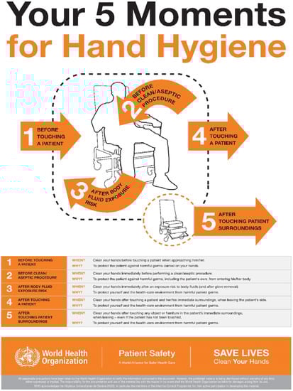 Figure 3. Moments For Hand Hygiene [from WHO Clean care is safer care Your 5 Moments for Hand Hygiene https://www.who.int/gpsc/5may/tools/workplace_reminders/en/ Revised August 2009 (Accessed on 24 March 2020)].
