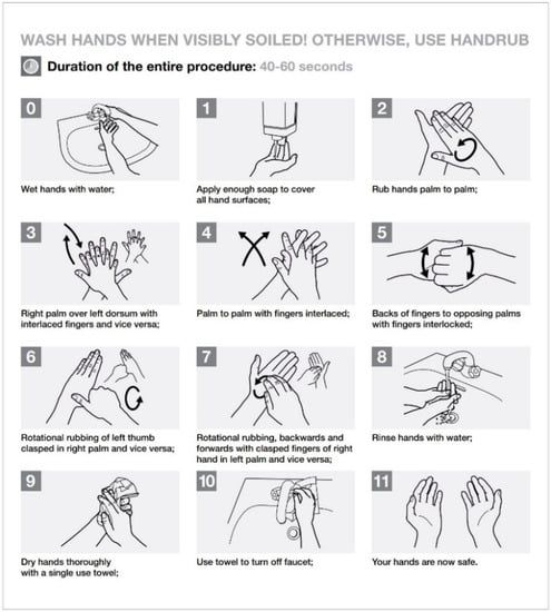 Figure 4. How to Hand Wash? [From: WHO Patient safety. Hand Hygiene: Why, How & When? Revised August 2009 https://www.who.int/gpsc/5may/tools/workplace_reminders/en/ (Accessed on 24 March 2020)].