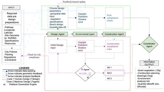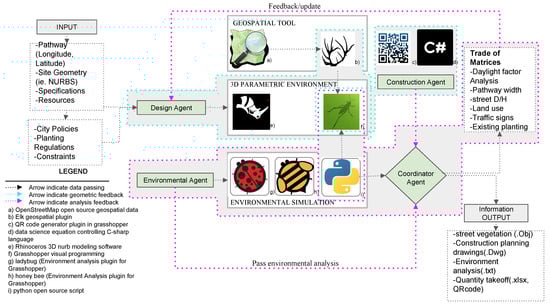 - The coordinator agent outputs are street vegetation design model, construction planning technical drawings, environmental analysis, and quantity take-off as shown in Figure 6.