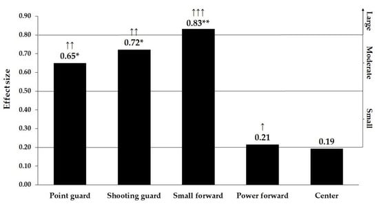 - Pojskic, H.; Separovic, V.; Muratovic, M.; Uzicanin, E. Morphological Differences of Elite Bosnian Basketball Players According to Team Position. Int. J. Morphol. 2014, 32, 690–694. [Google Scholar] [CrossRef][Green Version]