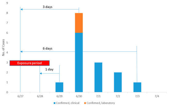 Distribution of food poisoning in clinically confirmed and laboratory-confirmed cases, considering the incubation period.