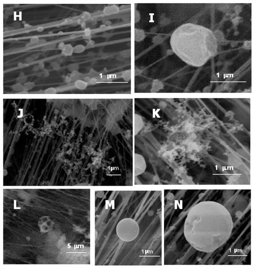 | Sphere-like particles | (0.2–0.5 μm) | (0.2–0.5) μm | (0.2–0.5) μm | |