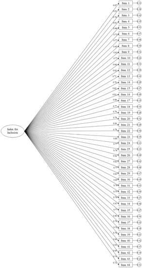 Despite the importance of these questionnaires, one of the instruments, par excellence of the IE, is the Index for Inclusion [24]. The original work was published in 2000, and its adaptation to the Spanish environment was carried out in 2002 [25] with the denomination of “Guide for the evaluation and improvement of inclusive education” by the University Consortium for Inclusive Education. The next English version is from 2011, the latter was translated into Spanish in 2015 [24]. In addition, this questionnaire has been translated into more than 30 languages (French [26]; German [27]; Italian [28]; Portuguese [29]; Danish [30], among others). This instrument offers support to the process of self-review and alternative development of educational inclusion, as opposed to that based on inspection, competition, and fear of failure. In this sense, the index for inclusion provides an opportunity to develop an inclusive school in collaboration with others by stimulating individual and collective thinking, as well as the structure of the whole school and educational development of the community. It can be used by individual teachers, non-teachers, and parents/caregivers. It can lead to new dialogues about what children could learn in schools. The index for inclusion consists of two parts, one qualitative and one quantitative. The qualitative section focuses on fostering the process of reflection on a set of issues separated by domains (creating inclusive cultures producing inclusive policies and evolving inclusive practices) framed in terms of a set of activities. As for the quantitative section, the index for inclusion includes three questionnaires. The first one analyzes the answers of the students (63 items, unifactorial) and is intended to measure their perceptions about the extent to which the school, where they study, is inclusive. The second questionnaire analyzes answers of the family (56 items, unifactorial) and is intended to measure their perceptions about the extent to which the school, where their children study, is inclusive. Finally, the third questionnaire, related to teachers, is composed by 70 items across the factors, “Creating inclusive cultures” (21 items), “Producing inclusive policies” (22 items), and “Evolving inclusive practices” (27 items), and is intended to measure their perceptions about the extent to which the school where they work is inclusive.
