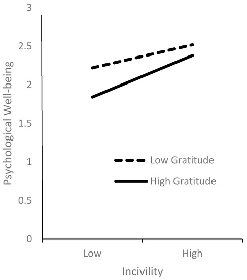 Moderation effect between incivility and gratitude on psychological wellbeing.