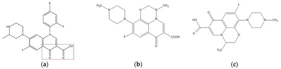 - Zhao, X.; Zhao, Y.; Ren, Z.; Li, Y. Combined QSAR/QSPR and molecular docking study on fluoroquinolones to reduce biological enrichment. Comput. Boil. Chem. 2019, 79, 177–184. [Google Scholar] [CrossRef]