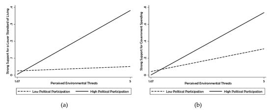 | Perceived environmental threats × political participation | 2.46% | 38.13% | 35.67% | 4.21% | 73.79% | 69.58% |