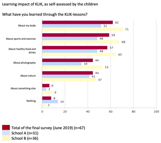 Figure 1. Learning impact of KLIK. - In the supplementary materials, an incomplete and partly Dutch version of Table S1 ‘Activities with the children in the KLIK-program 2016–2019’ (ijerph-668898-Table 1.pdf) was accidentally provided in the original version of our article [1]. This should be replaced by ‘Table S1_Activities KLIK-project 2016–2019_Corrected’.