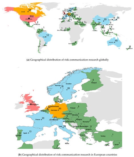 Geographical distribution of global risk communication research.
