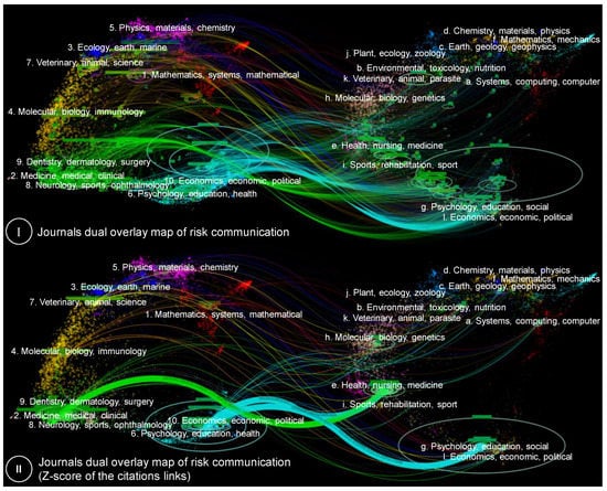 Dual-map overlay of risk communication papers on the global science map, on the basis of journals.