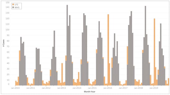- Martin, K.L.; Hanigan, I.C.; Morgan, G.G.; Henderson, S.B.; Johnston, F.H. Air pollution from bushfires and their association with hospital admissions in Sydney, Newcastle and Wollongong, Australia 1994–2007. Aust. N. Z. J. Public Health 2013, 37, 238–243. [Google Scholar] [CrossRef] [PubMed]