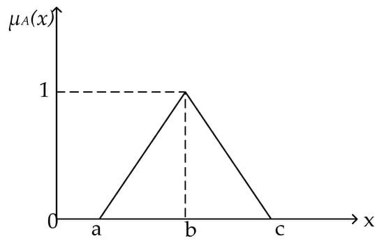 A triplet (a, b, c) can be used to represent a triangular fuzzy number []. The membership function of the fuzzy number μA(x) is given by