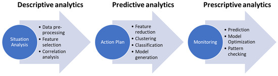 During the action plan step, the policy-maker can: (i) given the preliminary results set up the predictive analytics that will support the policy, (ii) verify with the preliminary collected set of data and the historical data the validity of the prediction, and (iii) define the policy. At this stage, the analysis is of the predictive type, like machine learning approaches for classification, prediction, and pattern identification.