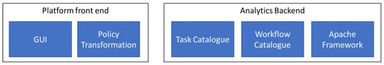 Figure 3 shows the principal platform components. More in detail the Analytics backend is an evolution of the big data engine described in the work of Rathore et al. [17] that builds on Apache Framework, i.e., Hadoop Distributed File System (HDFS), Hadoop, and Spark just to name the few, enabling processing of a large amount of data. The need for such a big data platform, considering the 5v definition, is due to the nature of the policymaking analytics that spans over a population of a region or entire country (i.e., volume). It includes different sources and formats (i.e., variety), concerning in most of the cases data trustworthiness and sensibility (i.e., value, veracity). Occasionally, when the policy is in the monitoring stage, it is able to process incoming new data from the policy application in order to monitor the effectiveness (i.e., velocity).