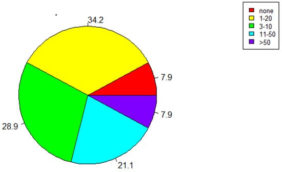In the next year, 34.2% of the respondents would use the app 1-2 times, 28.9% of the respondents would use the platform 3–10 times, 21.1% respondents would use the platform 11–50 times, and the percentage of respondents who would not use the platform at all is the same to the percentage of respondents who would use it more than 50 times (7.9%) (Figure 9).