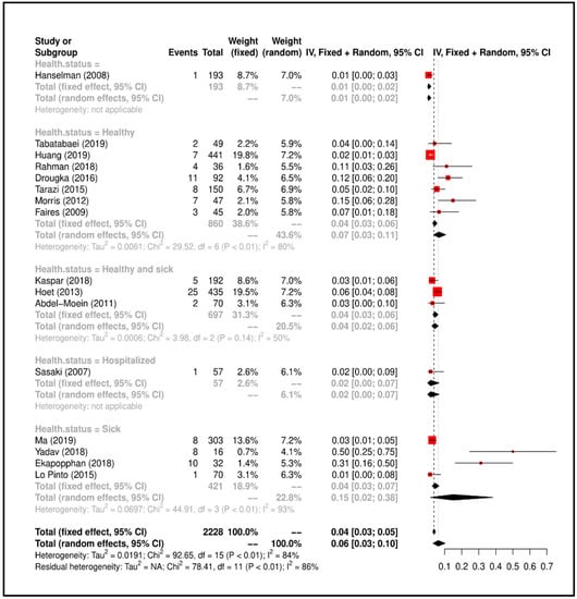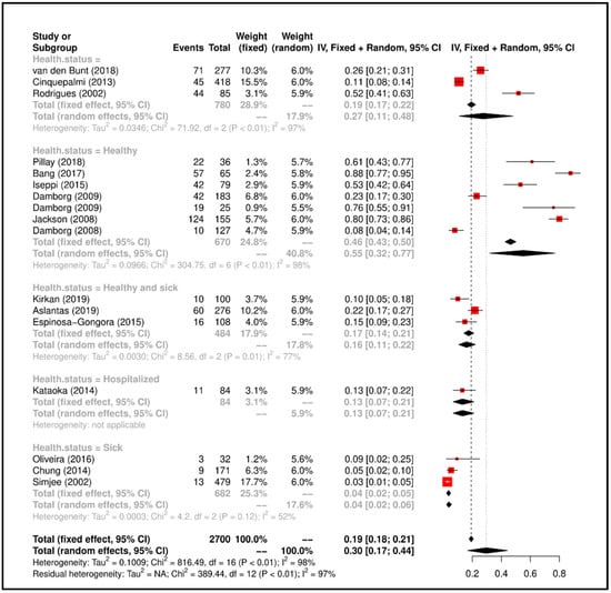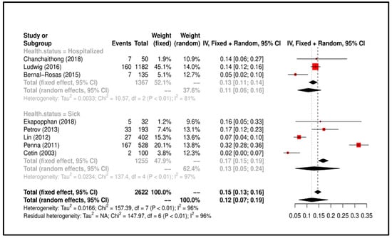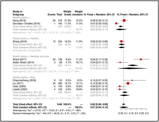 Finally, from the results of the Metanalysis, the sampled dogs were mostly sick subjects [