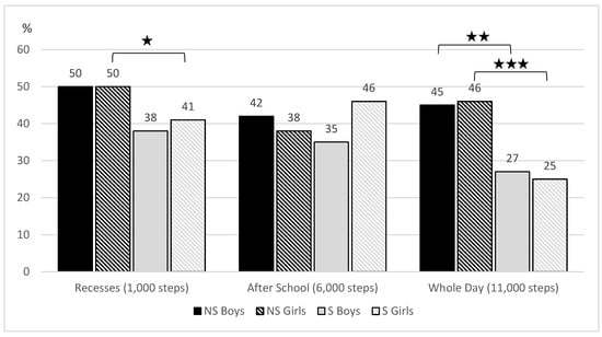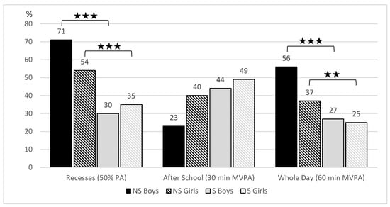 3.1. Compensation for Sedentary Behavior during Recesses, after School, and Whole Day with PA