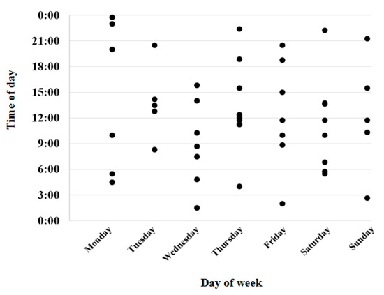 Time and day of hospital transfer among residents hospitalized for infection (n = 49).