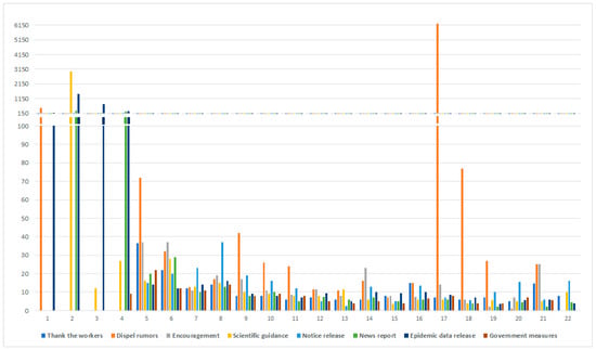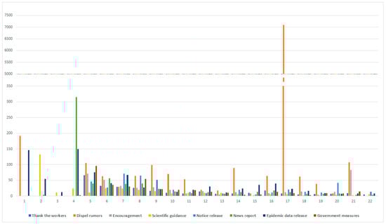 Back to Hypothesis 1, we found that with time-varying, the public most interested content type has indeed changed. At the early stage of the crisis, most people were concerned about the introduction of the virus and the method to prevent this new epidemic disease. During the development of the crisis, citizens paid much attention to the government’s employment and relevant notice. At the end of the crisis, the release of emotion and gratitude became mainstream. Control rumors were the mainstream during the whole crisis.