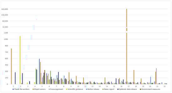 In December 2019, hospitals in Wuhan, Hubei province, China, identified several unknown pneumonia cases, which were later confirmed to be caused by a new type of coronavirus. Then the World Health Organization (WHO) renamed this disease, COVID-19 on 11 February 2020. This study took this public health crisis as a case due to its global pandemic nature and grave threat to human life and health. Wuhan, as the early city to be affected, has gradually recovered from the crisis. The experience from Wuhan would be helpful and enlightening for the other regions which still suffer the COVID-19 heavily. After the outbreak of COVID-19, official Weibo accounts were one of the most important sources of crisis-related information [89]. There were few studies focused on the information release and crisis response during the COVID-19 [27,90], but there is a lack the research about the communication behavior of the local government and the citizens’ reaction during the COVID-19. This study focuses on the official Weibo account Wuhan Release of Wuhan’s local government. There are three reasons for this: first, Weibo is one of the most popular SM platforms in China and has the first series of government accounts with a large number of followers (more than 3.78 million). Second, people prefer official news sources with strong authority and credibility during a crisis, and the Wuhan citizens were more likely to choose local media as their main source [33], thus Wuhan Release played an irreplaceable role in crisis communication to Wuhan citizens. Third, there exists the possibility that the government may regulate the content on social media by deleting or screening negative, sensitive, and extreme comments [91], which could influence the validity and reliability of the data from social media. We choose an official outlet is that it could relatively relieve the influence from the Internet censorship, that’s because the official media sifted through the information at the time of its release, and the research data would not be heavily influenced by the sensitivity of the topics discussed and the division of opinion [92].