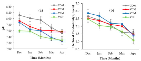 3.1. pH and Electrical Conductivity during Vermicomposting