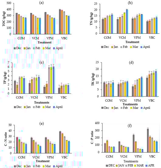 - Das, D.; Powell, M.; Bhattacharyya, P.; Banik, P. Changes of Carbon, Nitrogen, Phosphorous, and Potassium Content during Storage of Vermicomposts Prepared from Different Substrates. Environ. Monit. Assess. 2014, 186, 8827–8832. [Google Scholar] [CrossRef]