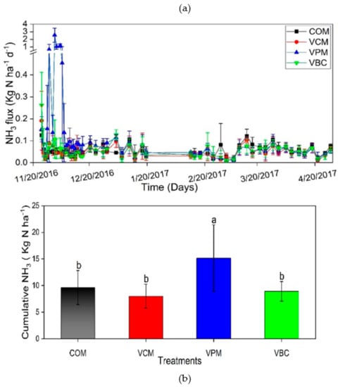 - Wang, J.; Hu, Z.; Xu, X.; Jiang, X.; Zheng, B.; Liu, X.; Pan, X.; Kardol, P. Emissions of Ammonia and Greenhouse Gases during Combined Pre-Composting and Vermicomposting of Duck Manure. Waste Manag. 2014, 34, 1546–1552. [Google Scholar] [CrossRef]