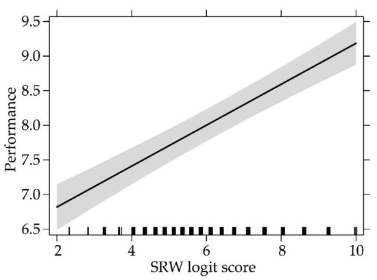Influence of SRW logit score on performance. The band represents the 95% CI.