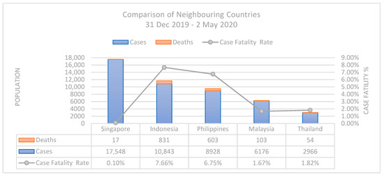 Country Comparison of confirmed cases, deaths and Case Fatality Rate (CFR) reported between 31 December 2019–2 May 2020 [70].