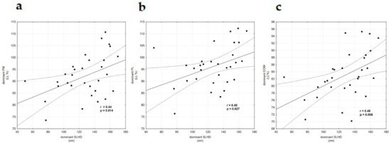 3.3. Linear Regression Model and Correlations for Dominant Leg SLHD and Dominant Leg YBT