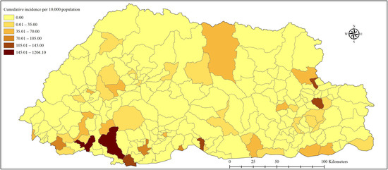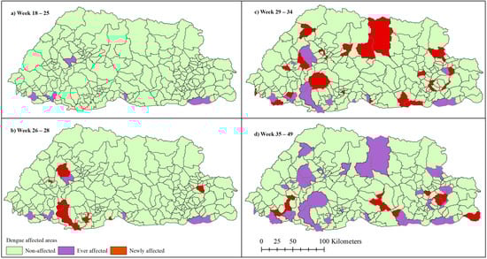 Tsheten, T.; Mclure, A.; Clements, A.C.A.; Gray, D.J.; Wangdi, T.; Wangchuk, S.; Wangdi, K. Epidemiological Analysis of the 2019 Dengue Epidemic in Bhutan. Int. J. Environ. Res. Public Health 2021, 18, 354. https://doi.org/10.3390/ijerph18010354