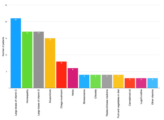 - Johnson, S.B.; Park, H.S.; Gross, C.P.; Yu, J.B. Complementary Medicine, Refusal of Conventional Cancer Therapy, and Survival among Patients with Curable Cancers. JAMA Oncol. 2018, 4, 1375–1381. [Google Scholar] [CrossRef] [PubMed]
