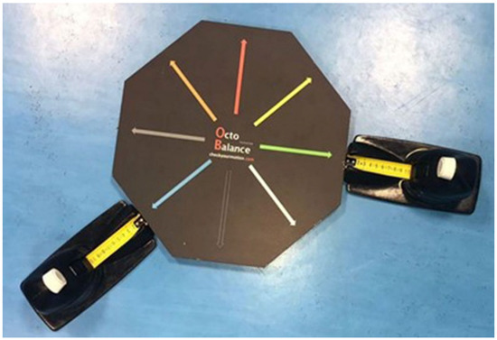 The OB was used as an assessment tool, system Check your Motion® (Figure 1), which involves an octagonal platform and 2 measurement systems (retractable steel ruler tapes), as a valid and reliable tool [3] to assess the functional capacities of athletes and identify weaknesses and asymmetries and to provide continuous feedback during the practice of corrective exercises.