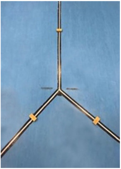 At the same time, the mUQYBT was used (Figure 2); it consists of 3 laces on the ground in a Y shape and 3 wooden blocks as the reference of the reached distance. This measurement test is an easy, effective, and scientifically valid way [12] to assess the functional capacities of athletes and to identify weaknesses and asymmetries.