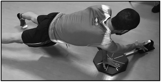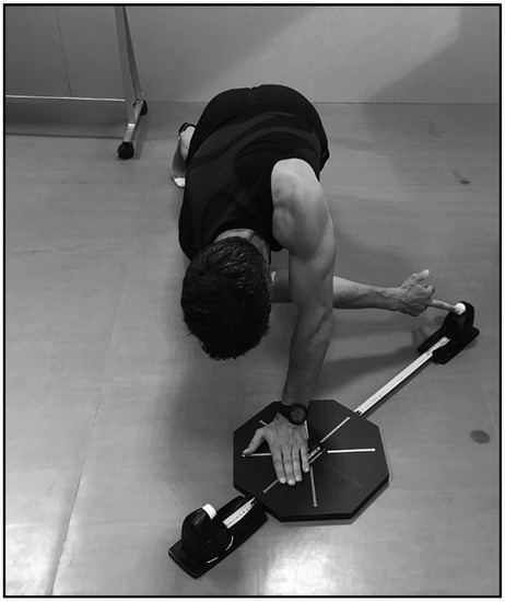 The test was performed with the participants barefoot in order to avoid any stability or balance provided by any footwear. Following the recommendations by Gonzalo-Skok et al. [3], three attempts were performed for each direction: medial, superolateral, and inferolateral, with each arm having a 3 min break during these attempts.