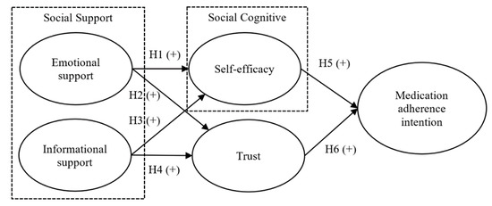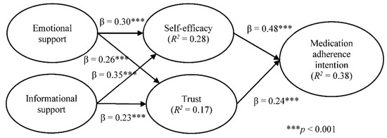 | Item/Construct | Emotional Support | Informational Support | Self-Efficacy | Trust | Medication Adherence |