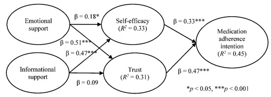 2.6. Effect of Emotional Support on Self-Efficacy and Trust
