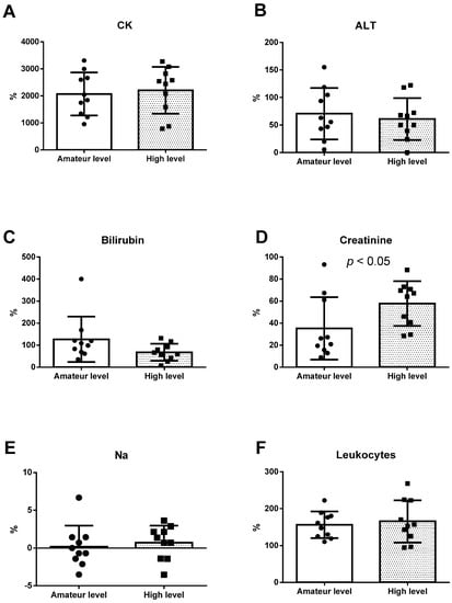- Witek, K.; Ścisłowska, J.; Turowski, D.; Lerczak, K.; Lewandowska-Pachecka, S.; Pokrywka, A. Total bilirubin in athletes, determination of reference range. Biol. Sport 2017, 1, 45–48. [Google Scholar] [CrossRef]
