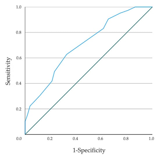 When assessing the construct validity of the Frail-VIG index with respect to FP, the AUC-ROC was 0.704 (95% CI, 0.622 to 0.786) (Figure 3), consistently with an adequate convergent validity. Table 3 shows the sensitivity, specificity, positive and negative predictive value, and Youden index for different cutoffs. The Youden index presented its best score (0.43) for the cutoff of the Frail-VIG index at a ≥0.20.