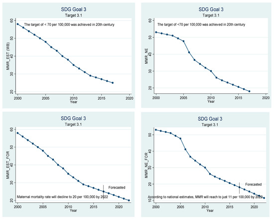Sustainable development goal 3, target 3.1 (maternal mortality) ex-post and ex-ante.