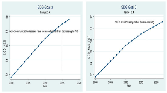 Strategic development goal 3, target 3.4 (mortality from non-communicable diseases) ex-post and ex-ante.